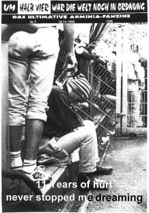 Zum Inhalt: Arminia und Bert Brecht, Arminia-Boy und Girl 98, Besuch in Wembley, Arminia-Fan in der Ferne, Arminia und die Liebe, Barcelona-Madrid, Almausbau